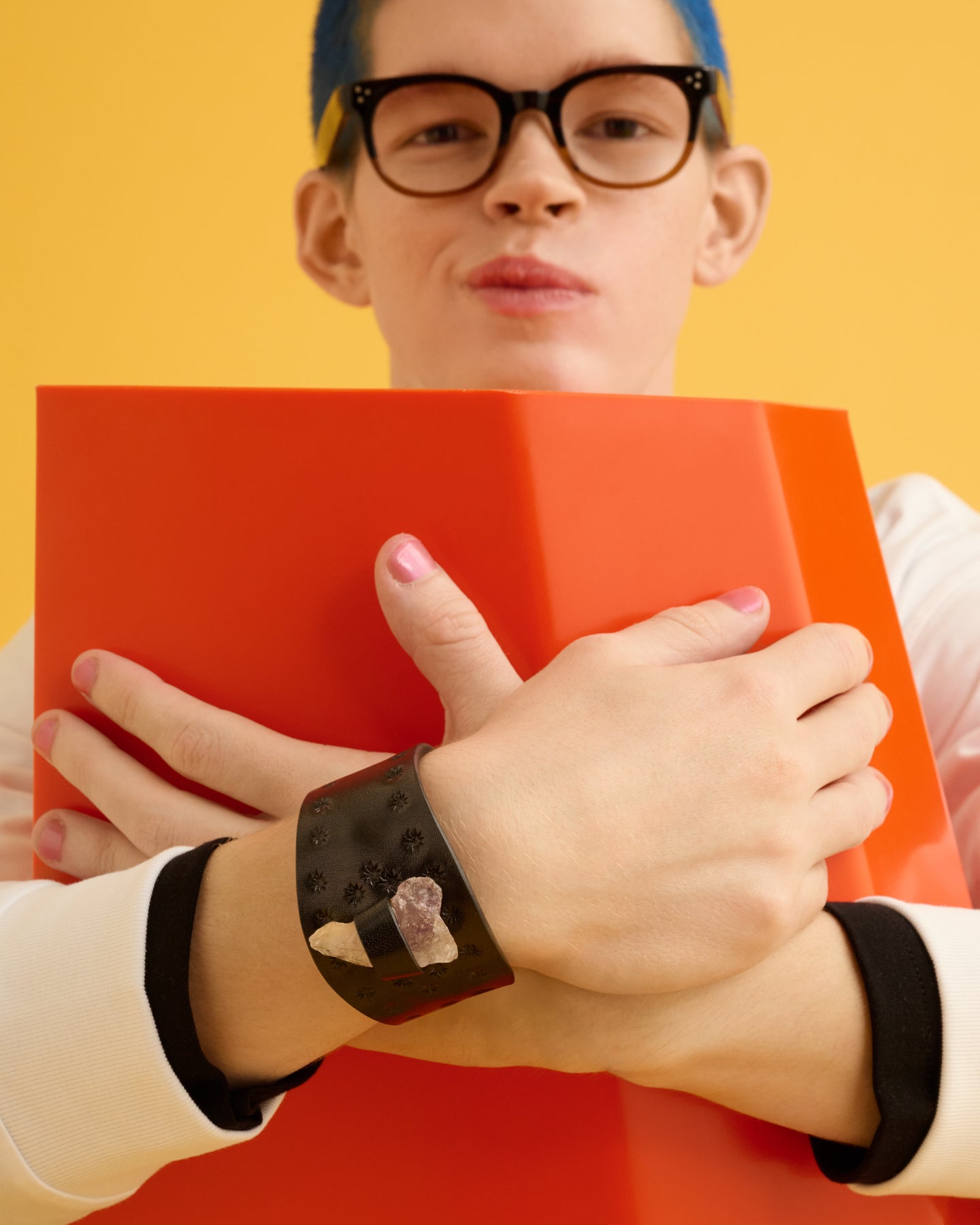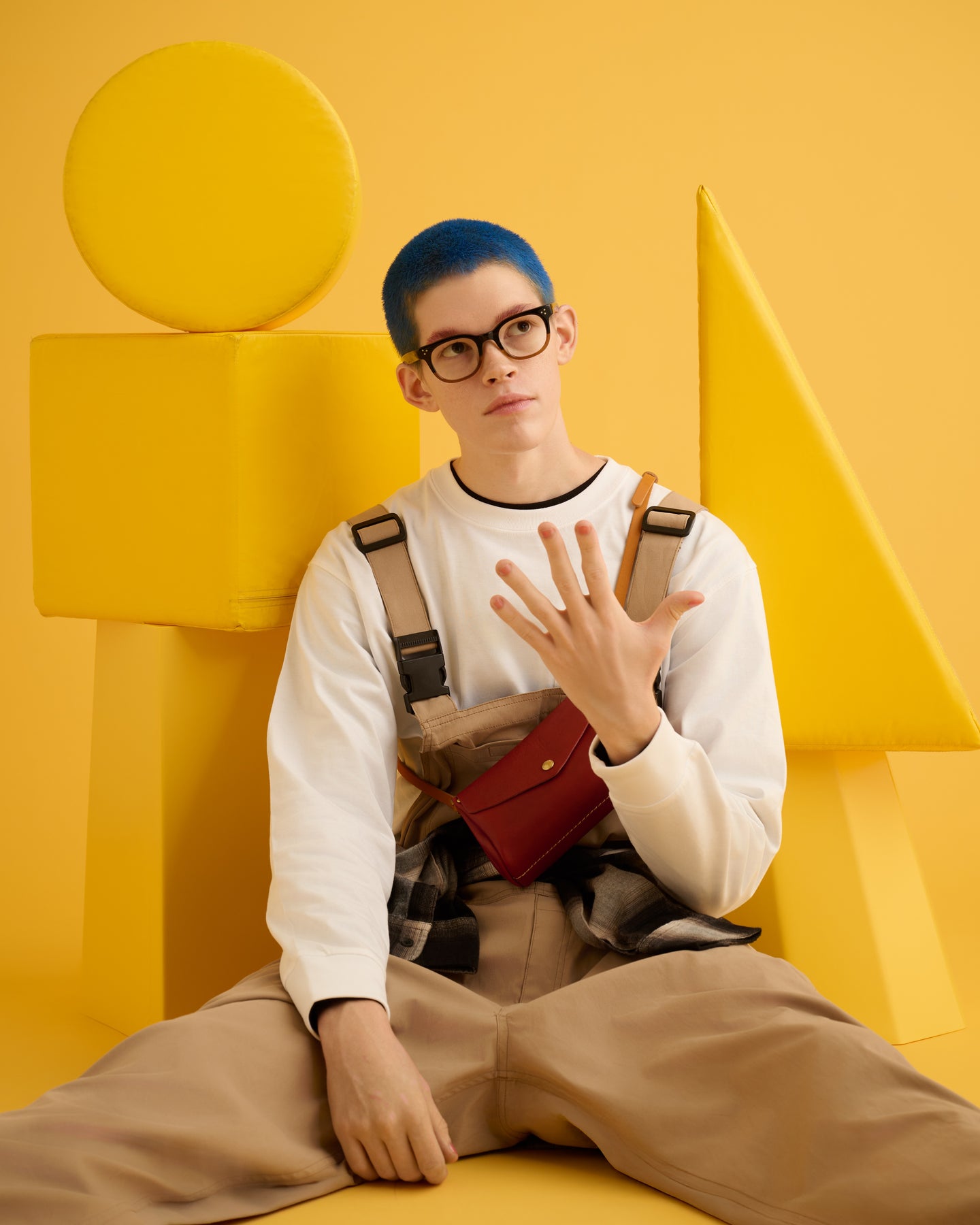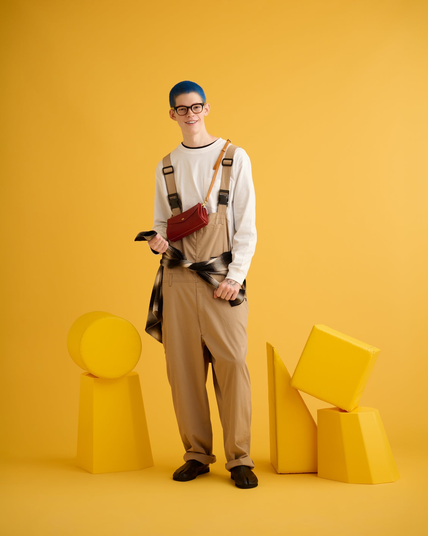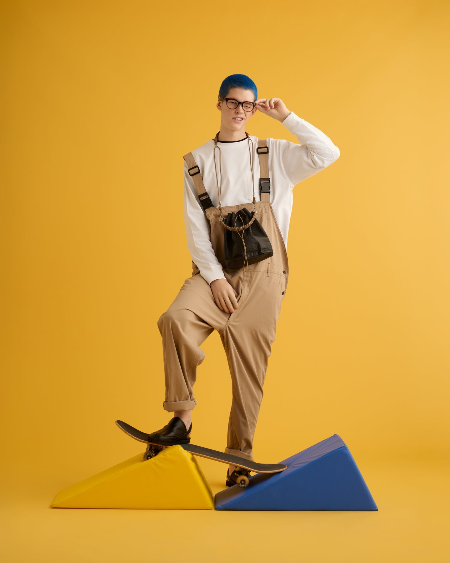 スケートボードに乗る日は、動きやすさとおしゃれの両立がカギ。レザー小物をプラスすれば、ラフな装いにも程よいアクセントが。アクティブな日のお出かけも、気分が上がるスタイルに。