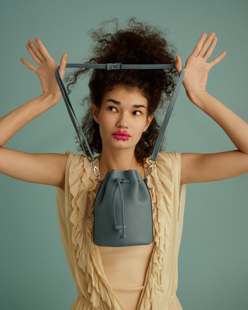 <LEZALI>壓花迷你抽繩肩背包/天藍色