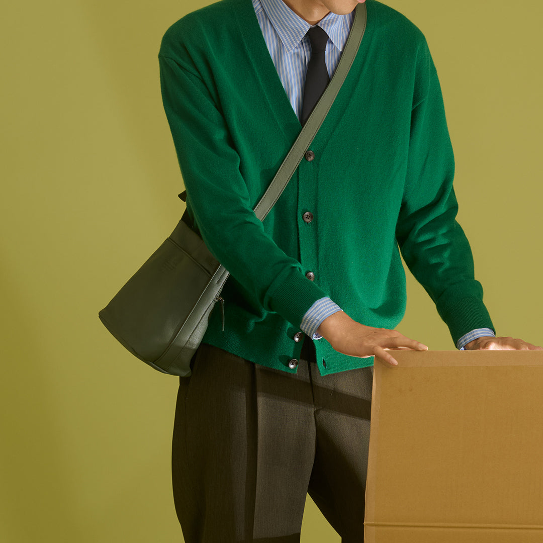這款斜肩包使用柔軟牛皮製作而成,簡約大方的直式外形成為服裝造型點綴亮點,非常適合在日常攜帶使用。主要收納夾層採用磁扣設計,可大幅度敞開,長夾等大小物品皆能良好收入。包身內外側收納口袋皆特意考量流暢使用性,可輕鬆收拿智慧型手機等常需取出的隨身物品。