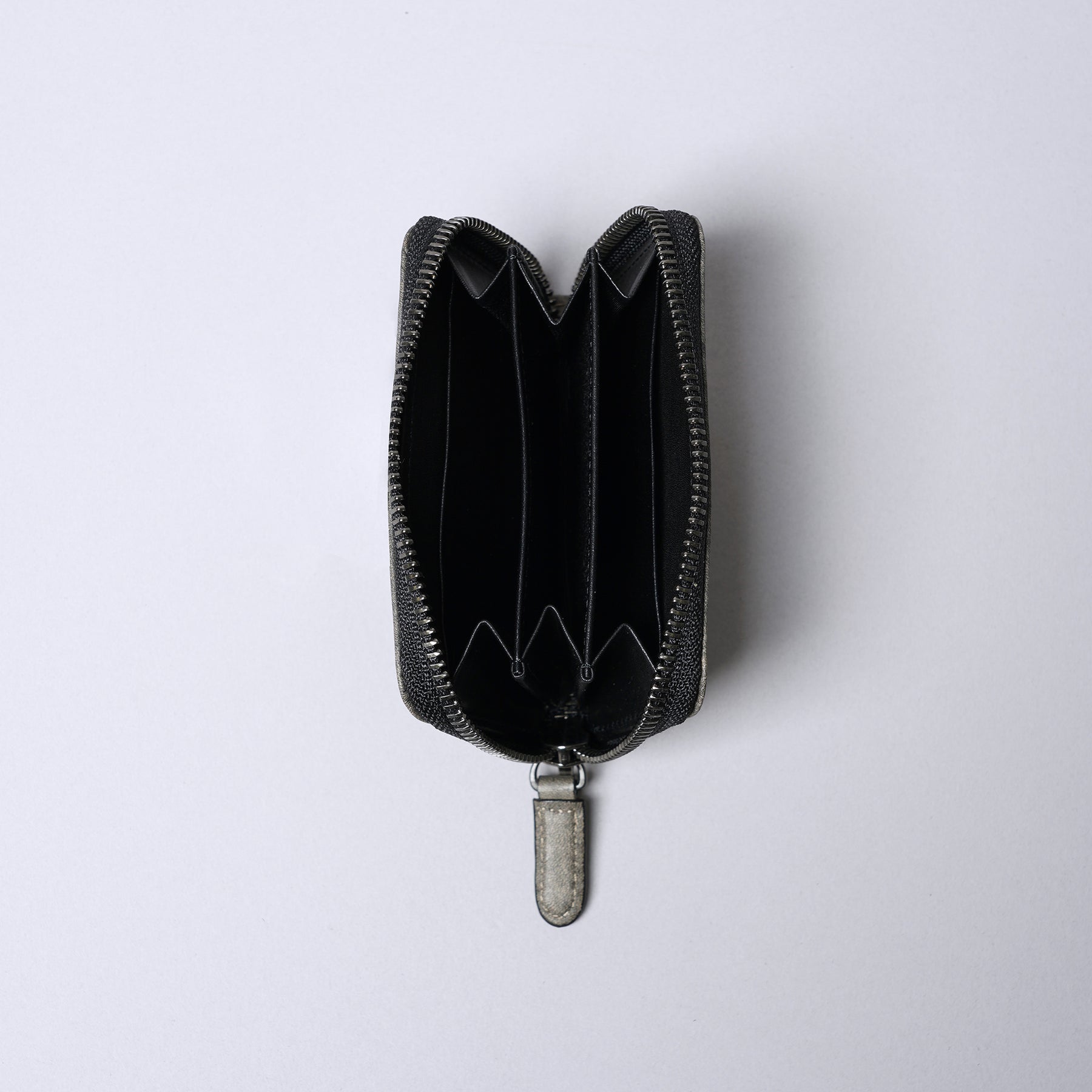 🇯🇵採用生後6個月至2年左右的中牛皮製作而成的這款拉鍊零錢包,以細緻且柔滑的觸感為其特色,與成牛皮相比雖然厚度較薄,仍因緊密的纖維而能擁有良好強度。越使用皮革將越柔軟貼合手型,還可享受美麗的舊化現象。此款牛皮以日本古老的染色技術「墨染」處理,墨汁獨特的深邃黑與單一黑色調有所區別,賦予皮革更為內斂的氣質。由於以手工染色,每塊皮革呈現出的色澤和深淺皆有不同,展現出獨一無二的個性。墨染的自然質感更加突顯皮革本身的材質特性。