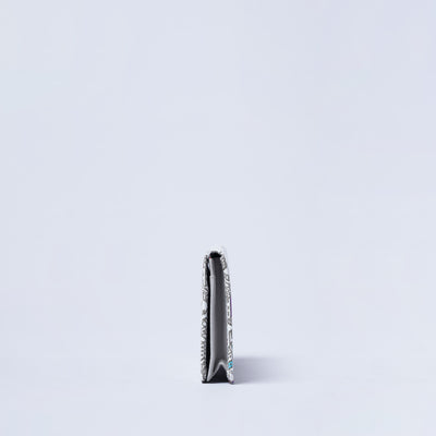 純白の本革をベースに伝統工芸士の指導の下、熟練された職人によって染め上げられた繊細で鮮やかな文庫革を使用した本アイテム。白い革に施された繊細な模様が美しく、型押しによってできる凹凸は光の反射できらきらと存在感を醸し出します。文庫革は、真っ白な牛革を使用し、独特な加工を施した工芸品を指します。