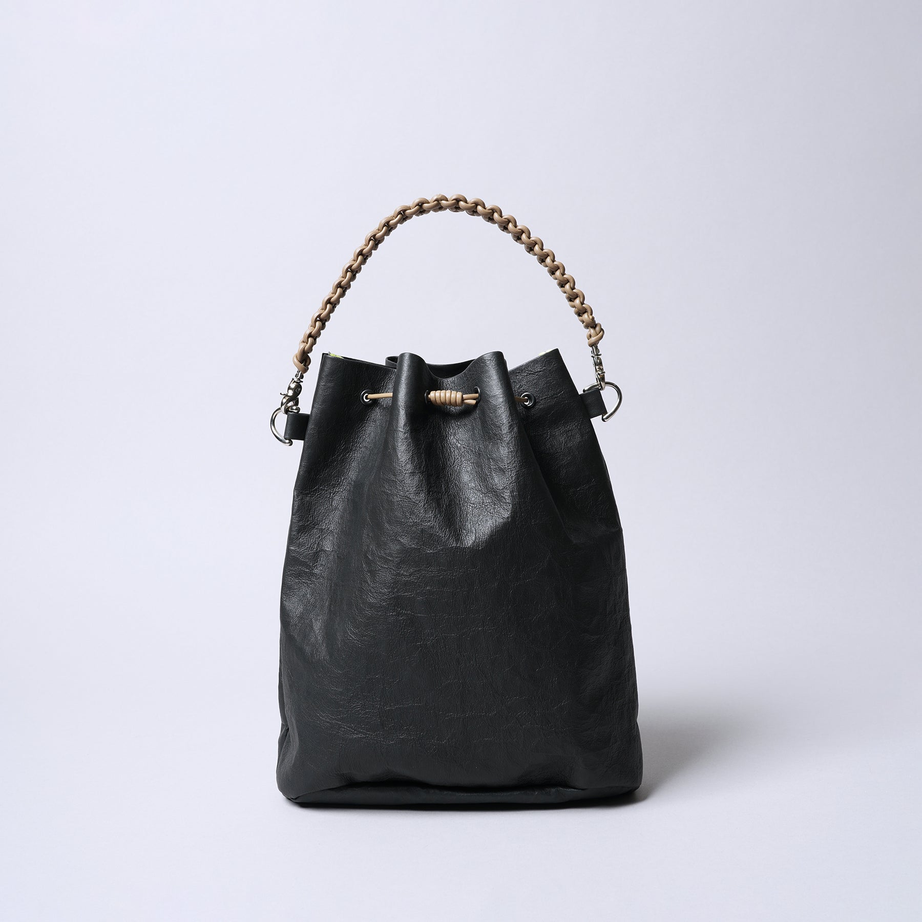 Super Lightweight Dyneema Leather Drawstring 2 Way Bag / Black
