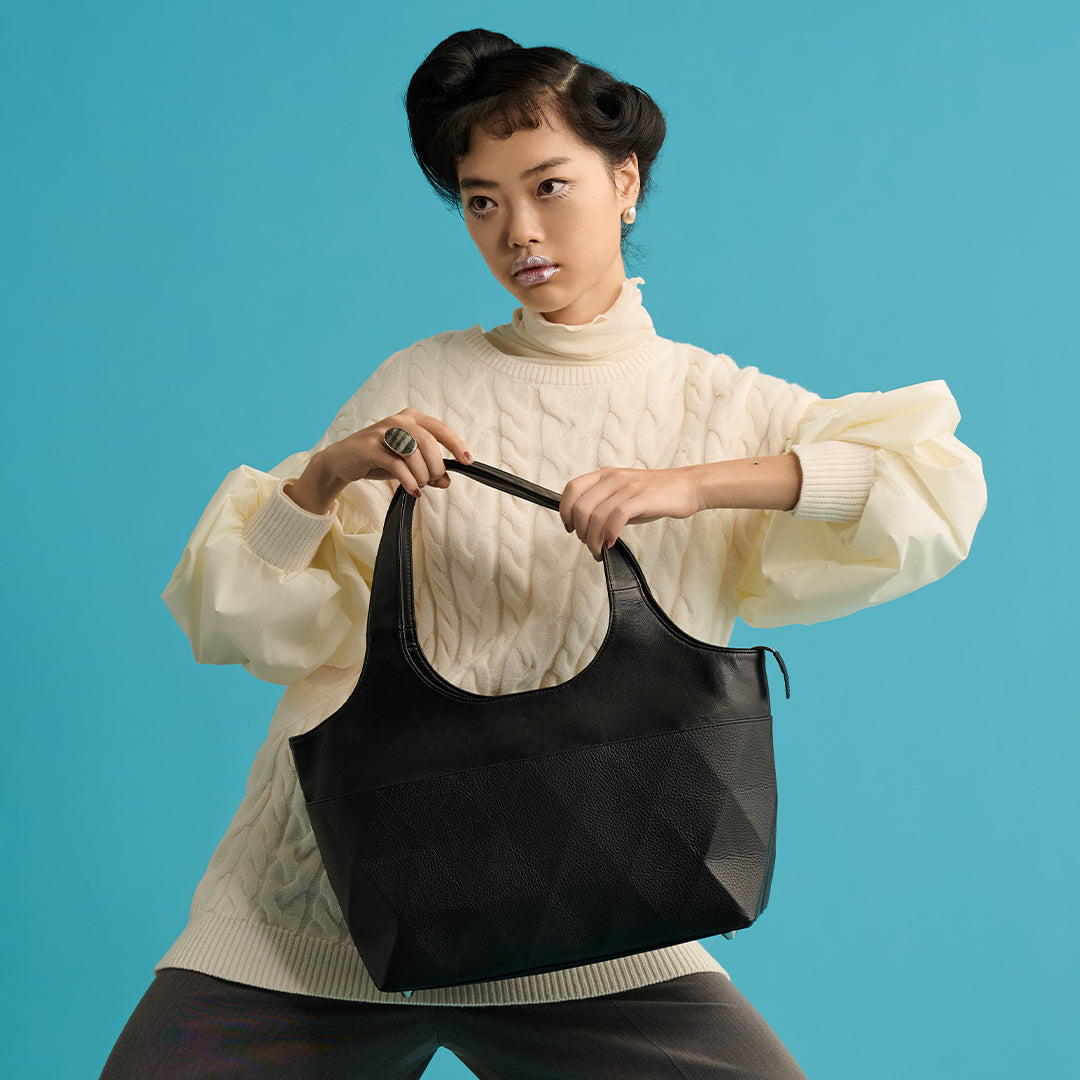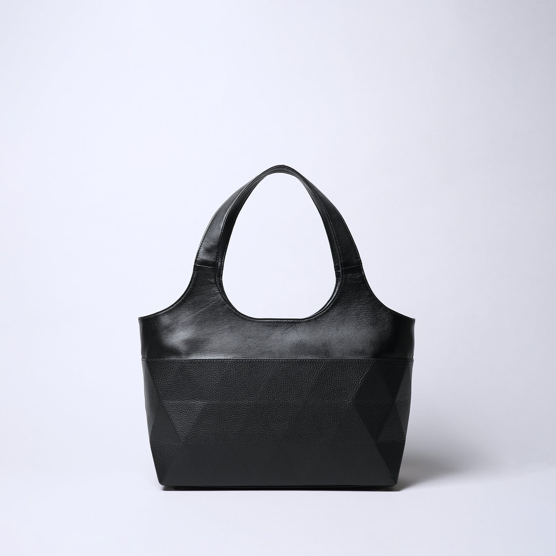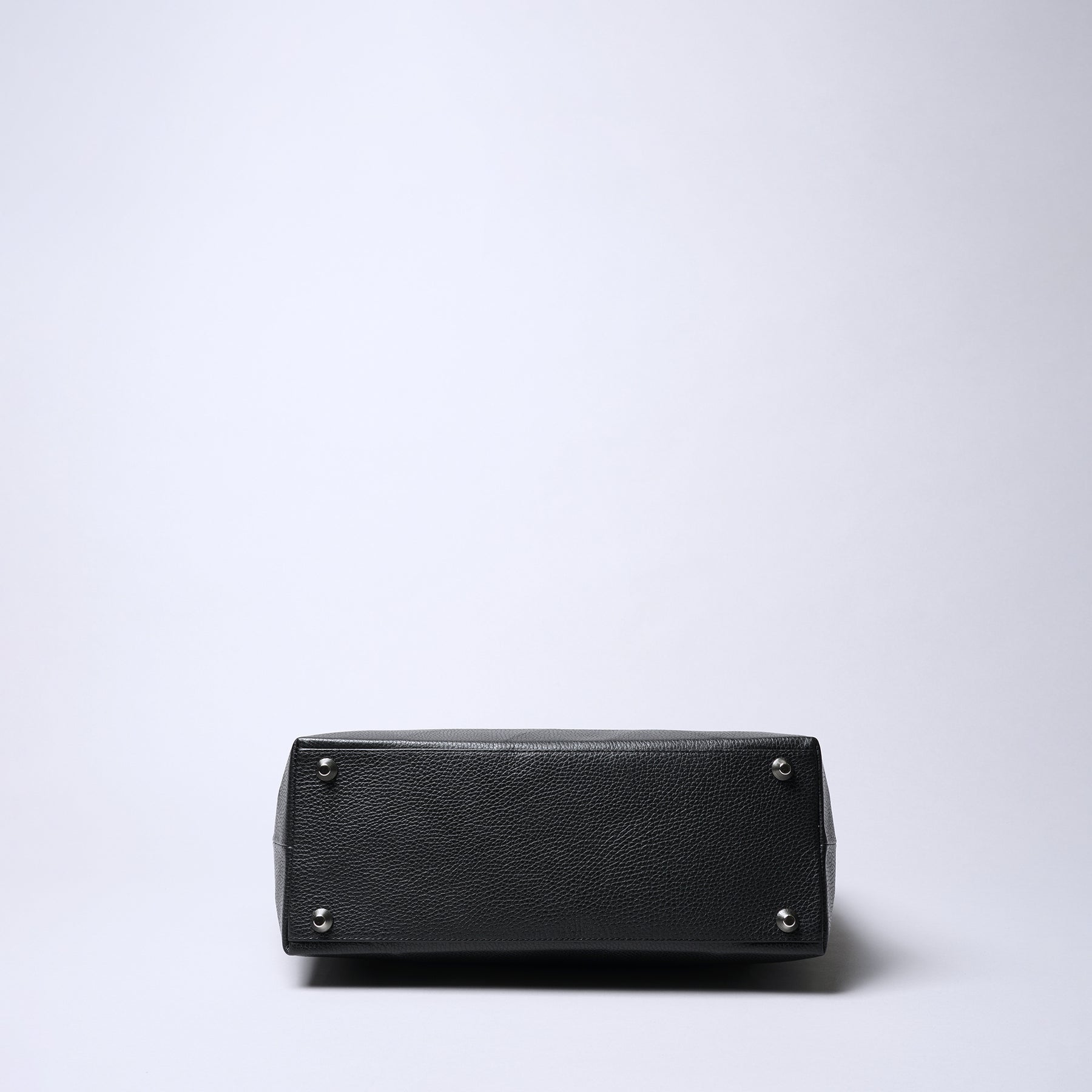 The handle features a luxurious leather design known as a “grip handle.” Integrated with the main body, it offers exceptional strength and outstanding stability when held. Its size easily accommodates A4 documents. It comfortably carries a notebook PC, folding umbrella, lunch box, and light outerwear. Weighing just 590g—lighter than a single magazine—it's remarkably lightweight. The top zipper closure ensures contents remain hidden.