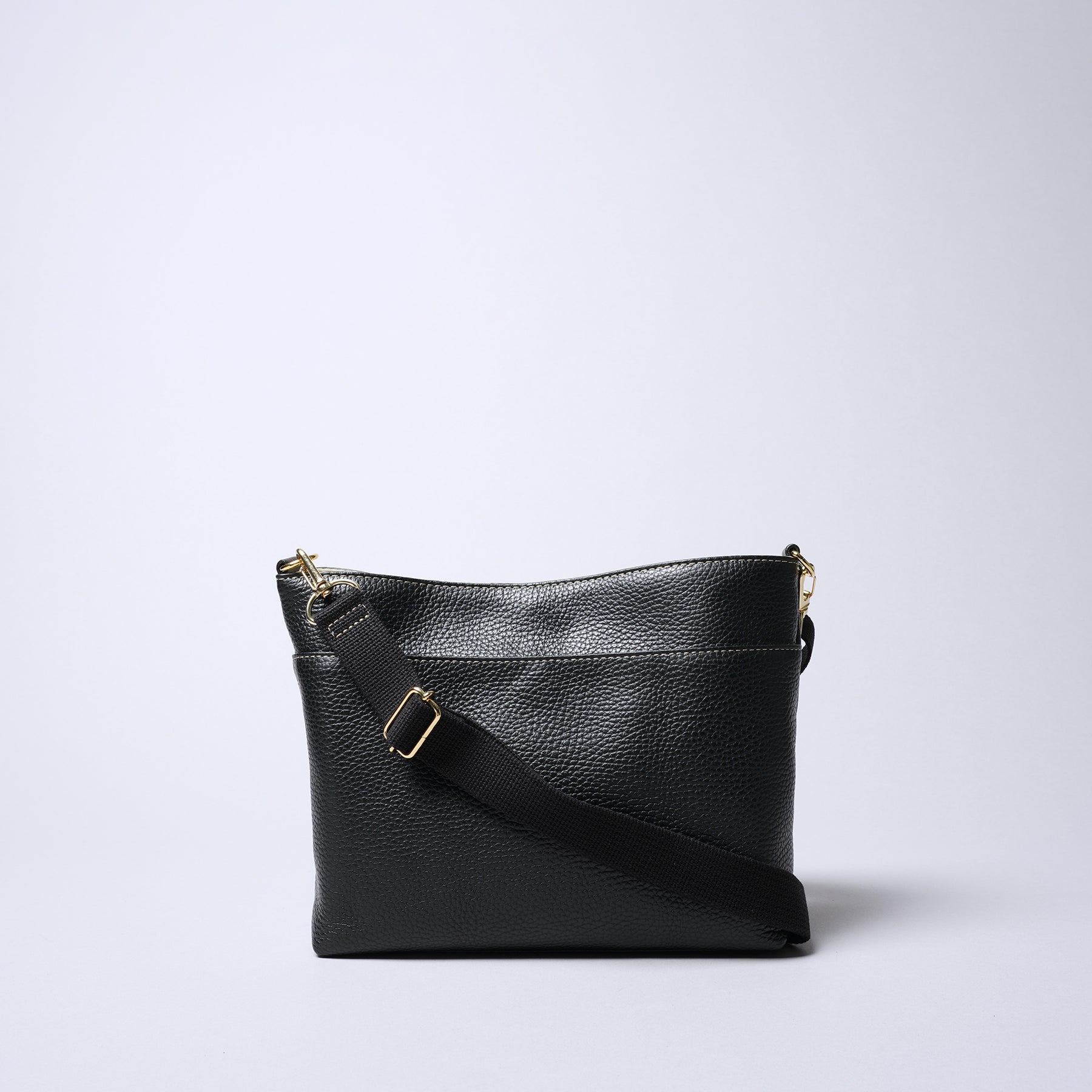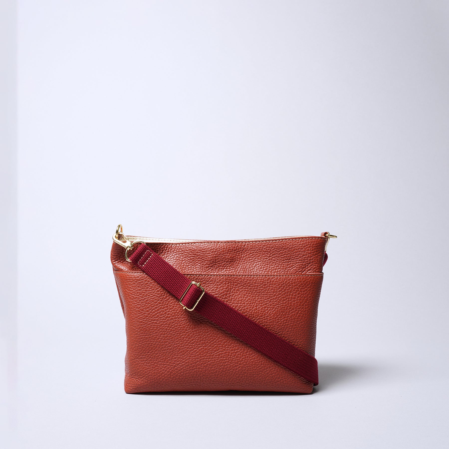 Gold hardware and zippers add a subtle touch of luxury. The zipper pull is also crafted from leather, designed for smooth, easy opening.