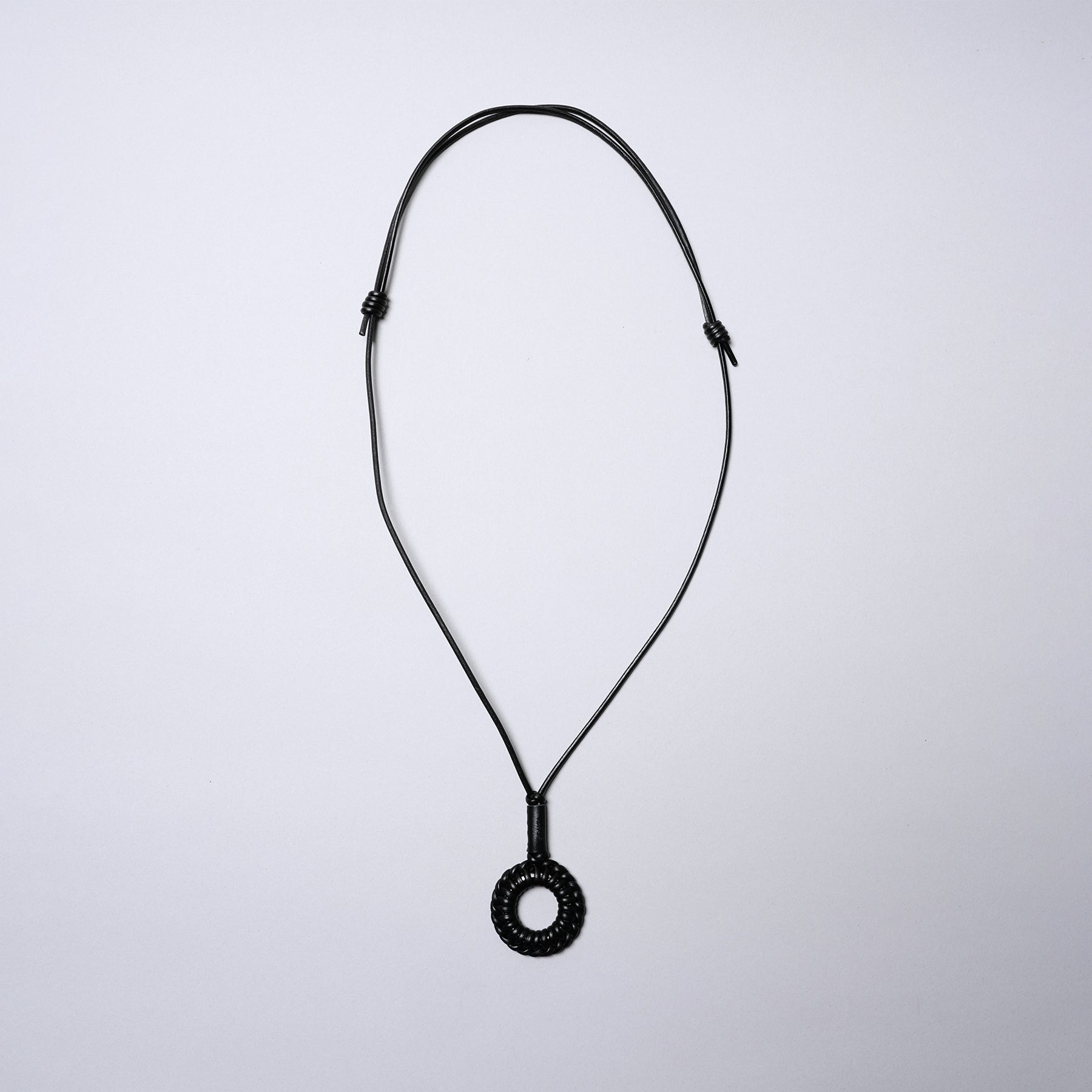 <SENTI FLATTER THE SENSES> Leather Blade Circle Long Necklace / Black