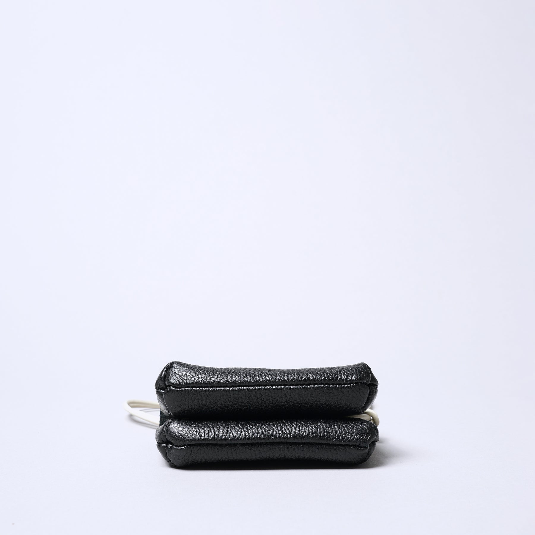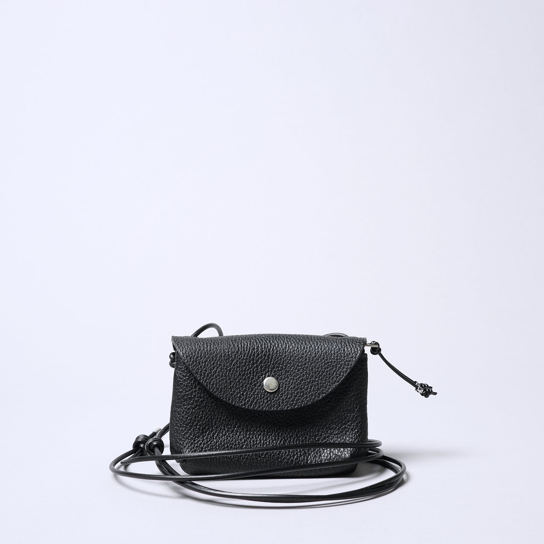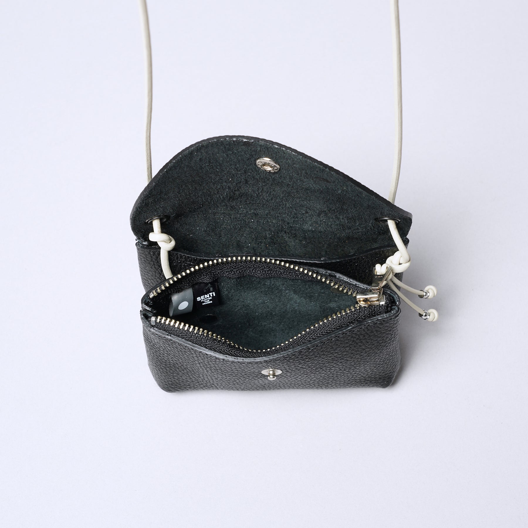 <SENTI FLATTER THE SENSES> Shrink Leather Neck Wallet / Black x Ivory
