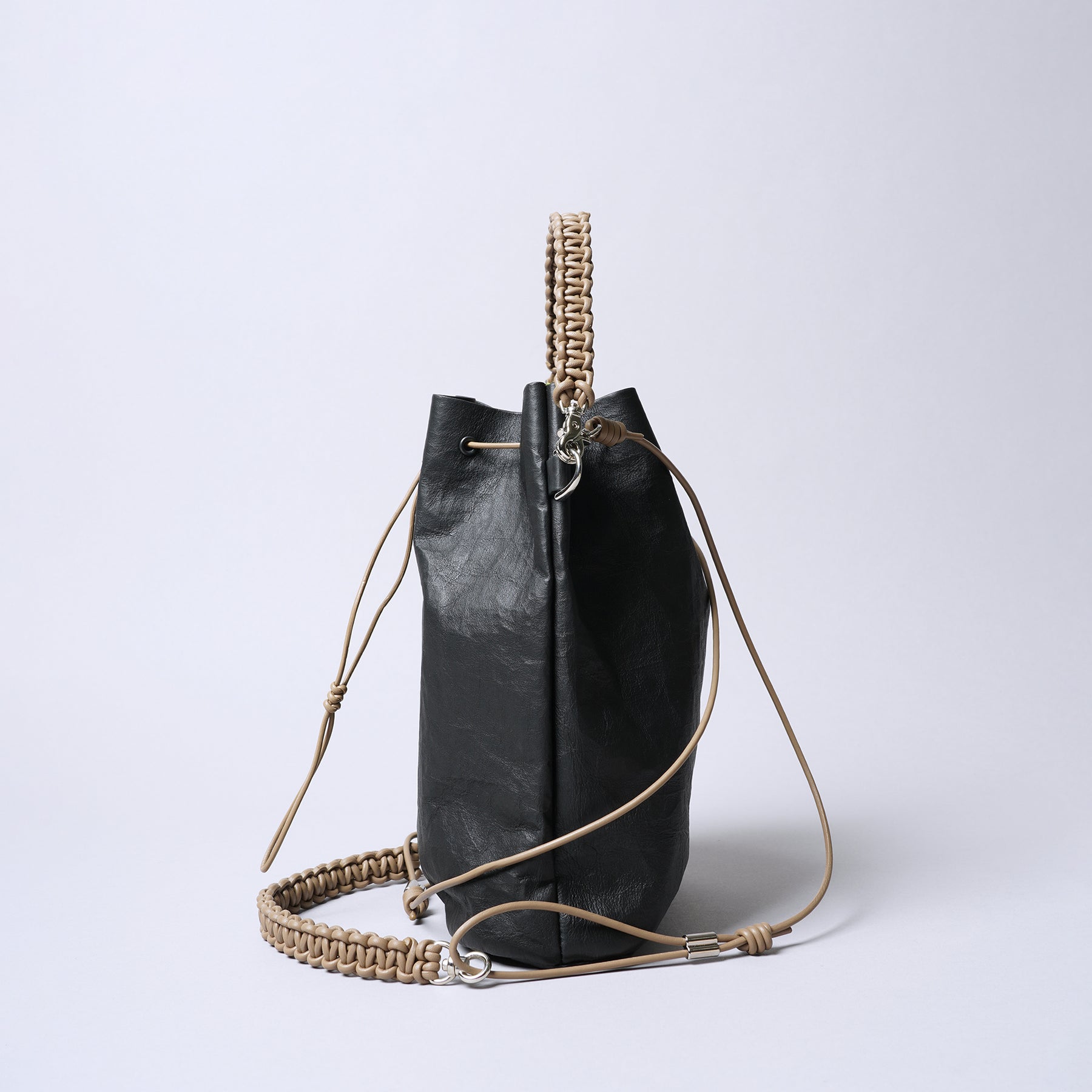 <SENTI FLATTER THE SENSES> Super Lightweight Dyneema Leather Drawstring 2 Way Bag / Black x Camel