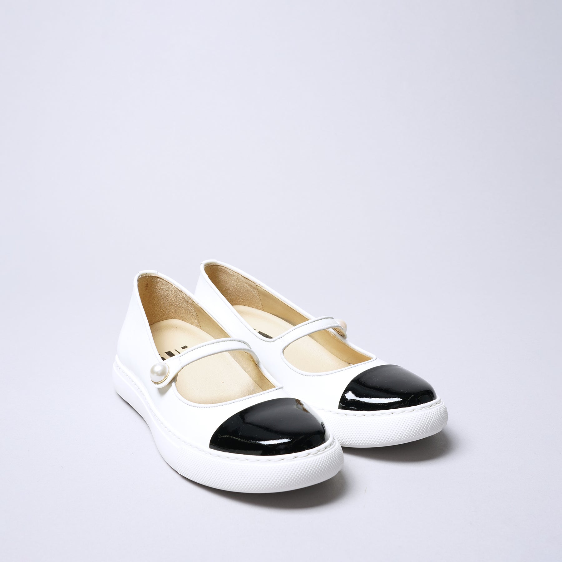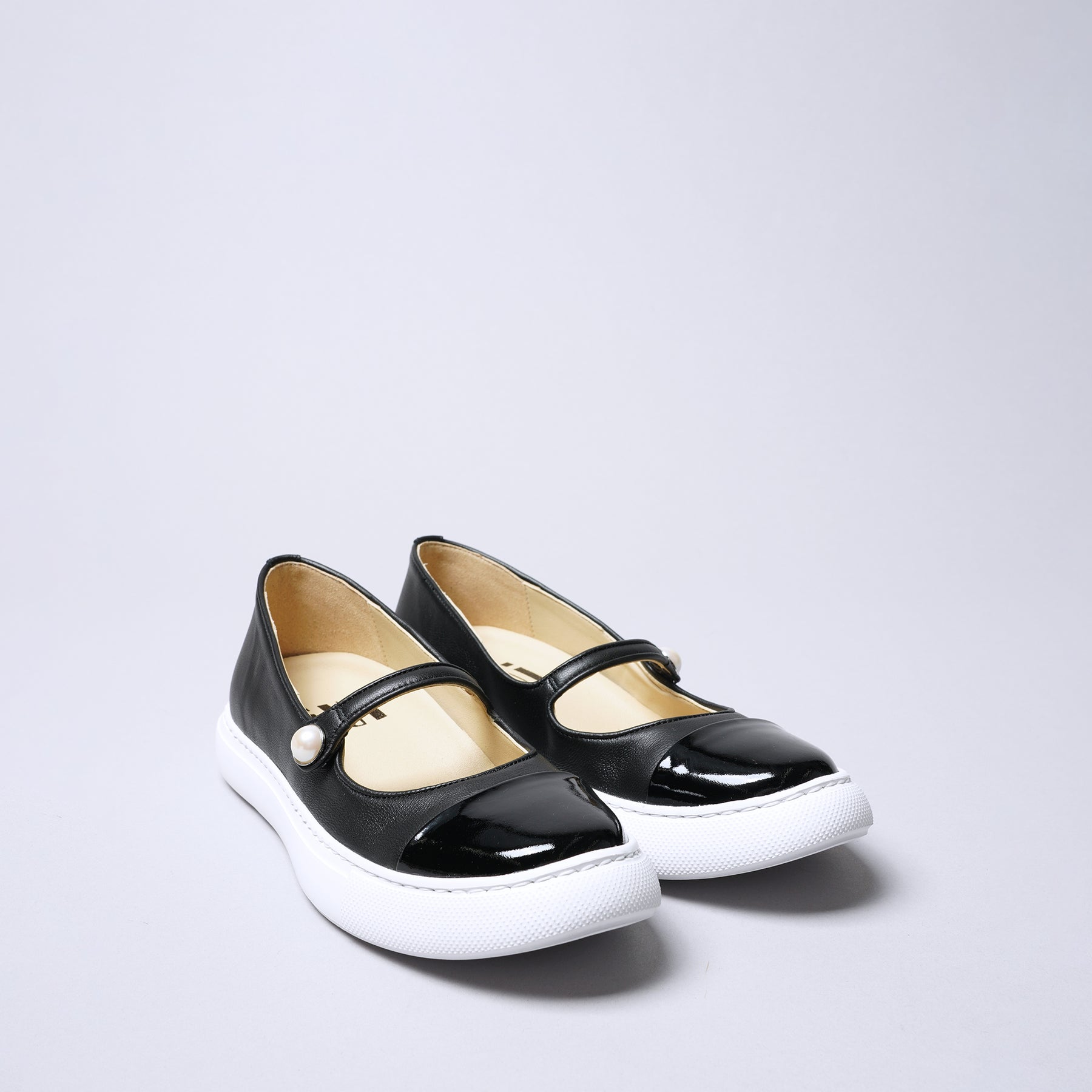 <IUI>單扣帶球鞋/黑色×白色