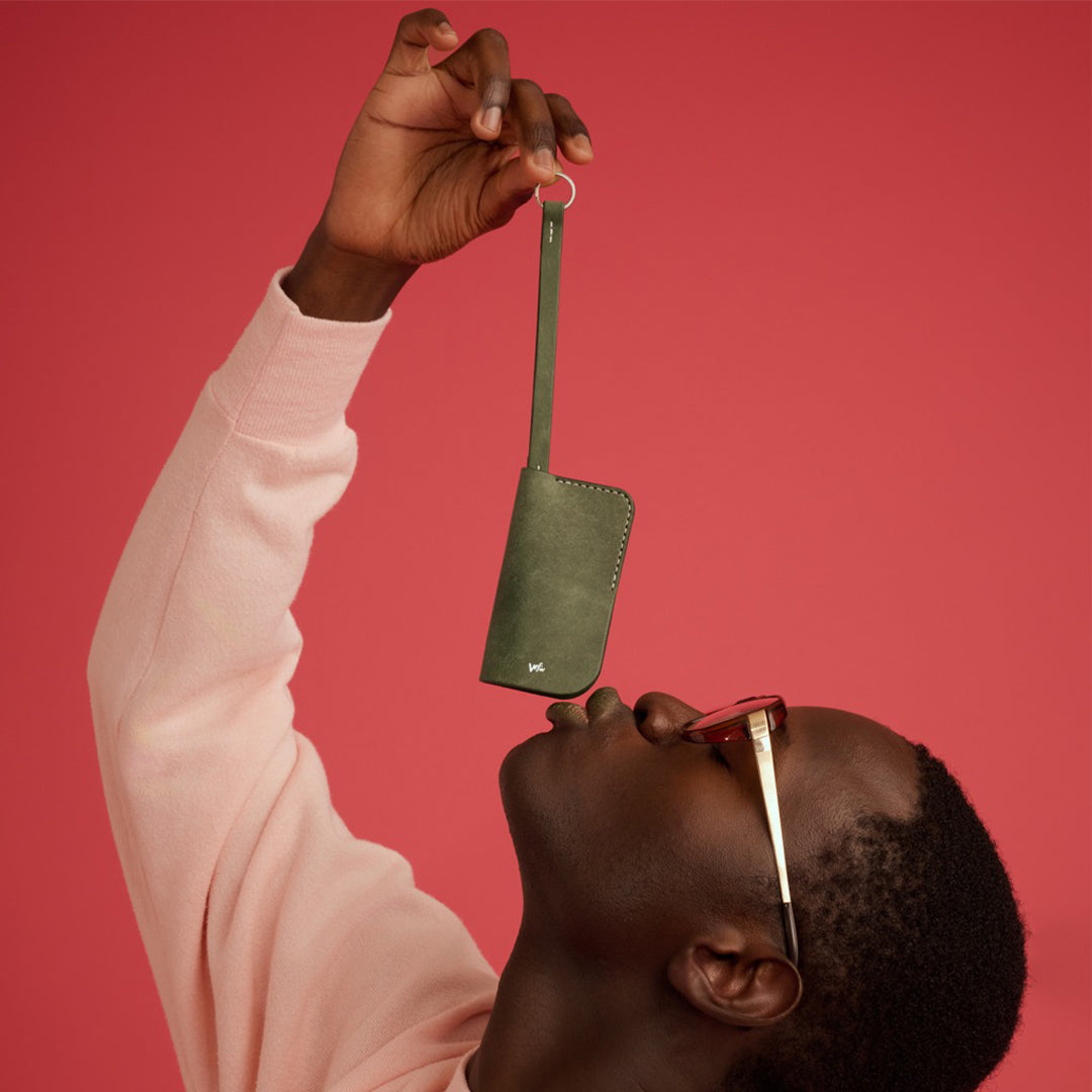 This is an irregular bell-shaped key case. It can also hold a car smart key and has double rings on both sides of the strap so that the main key can be attached outside. Made of Italian leather with a unique uneven texture, the more you use it, the deeper the color will become and the shinier it will become over time.