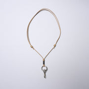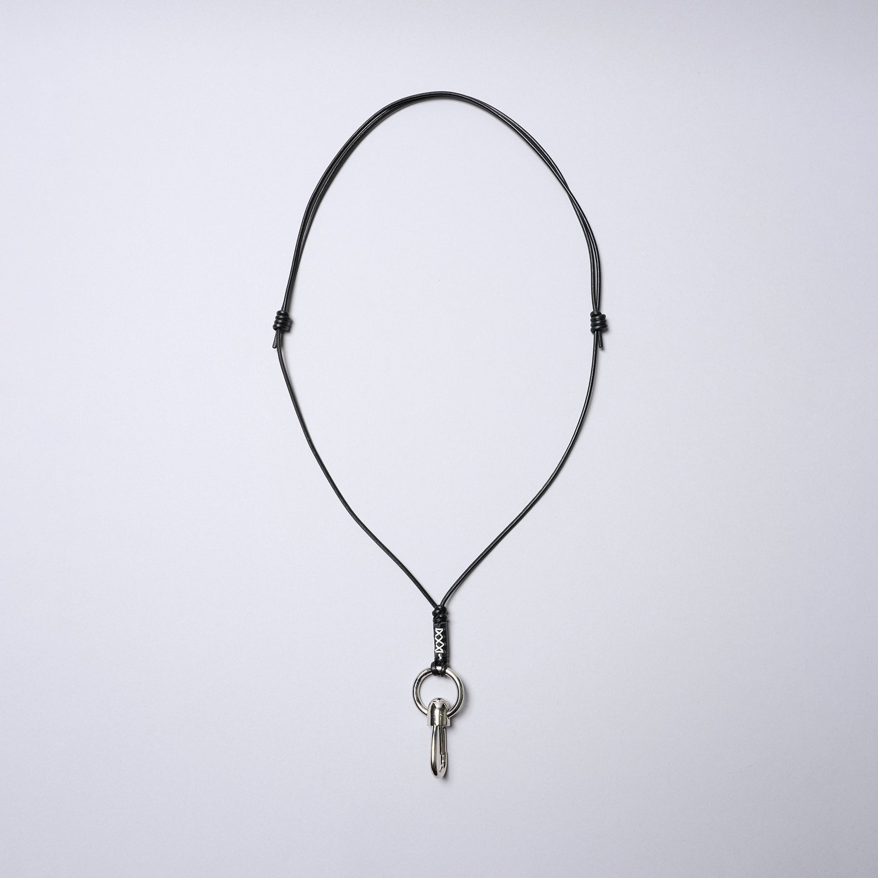 Made with supple leather cord; length adjustable by sliding the knot (approx. 80cm to 150cm maximum / can be worn crossbody).