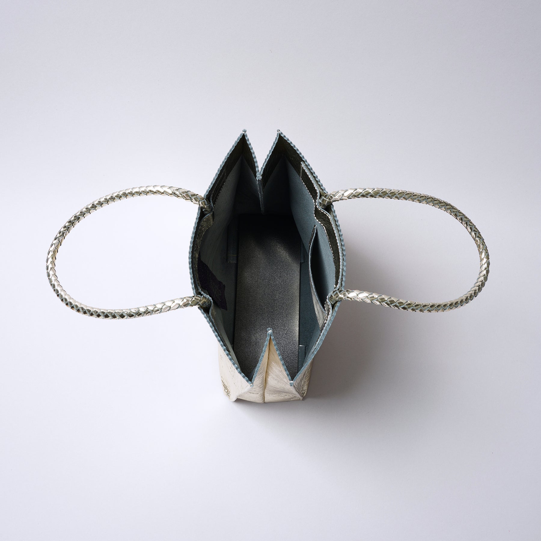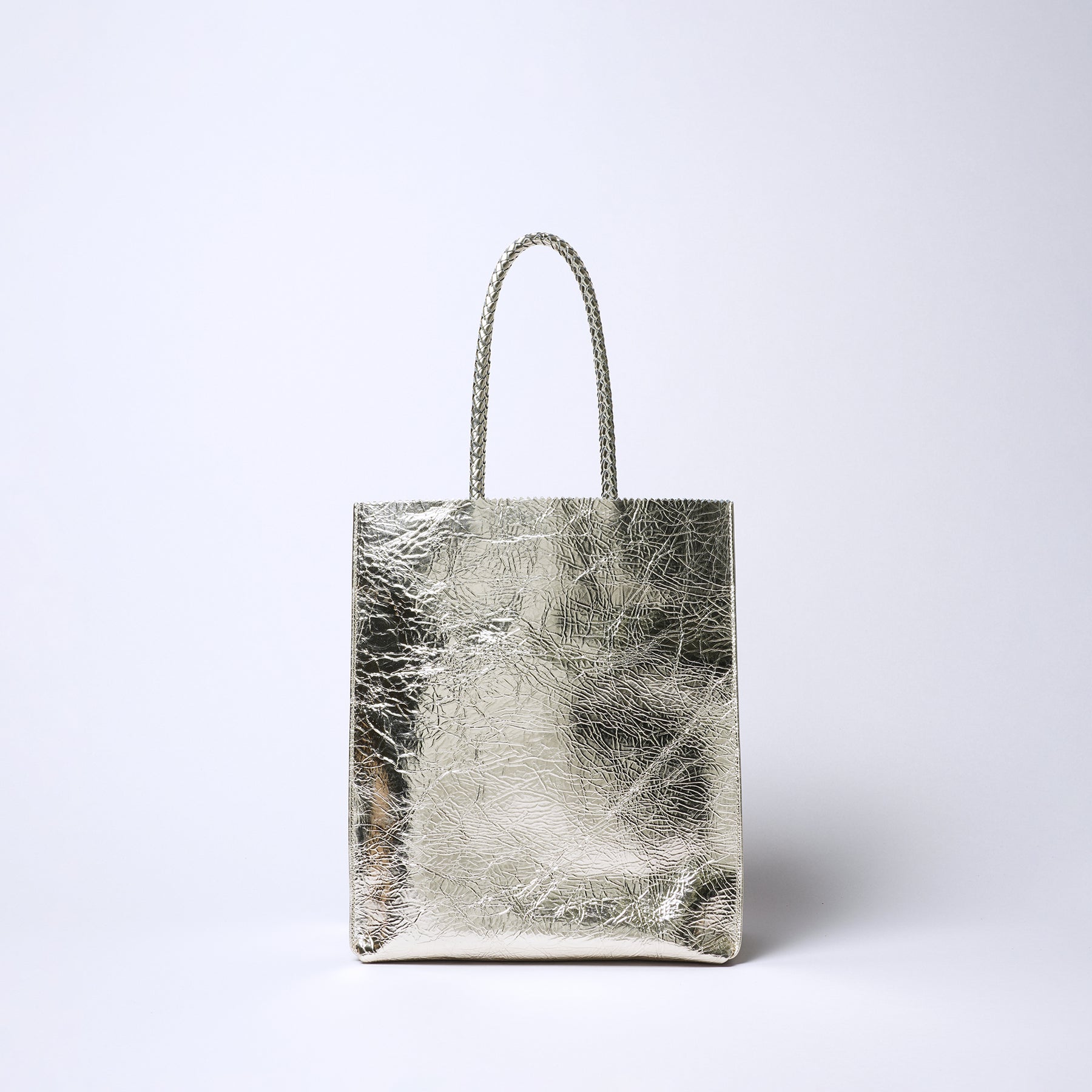 A crinkled foil-finished leather tote. Perfect for carrying A4 work documents ... This tote also makes a great secondary bag.