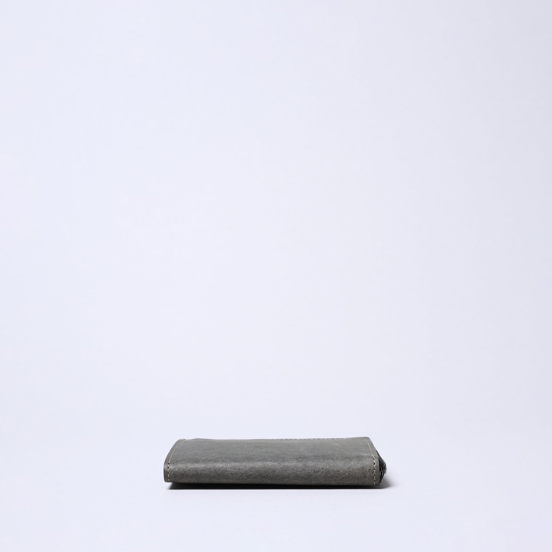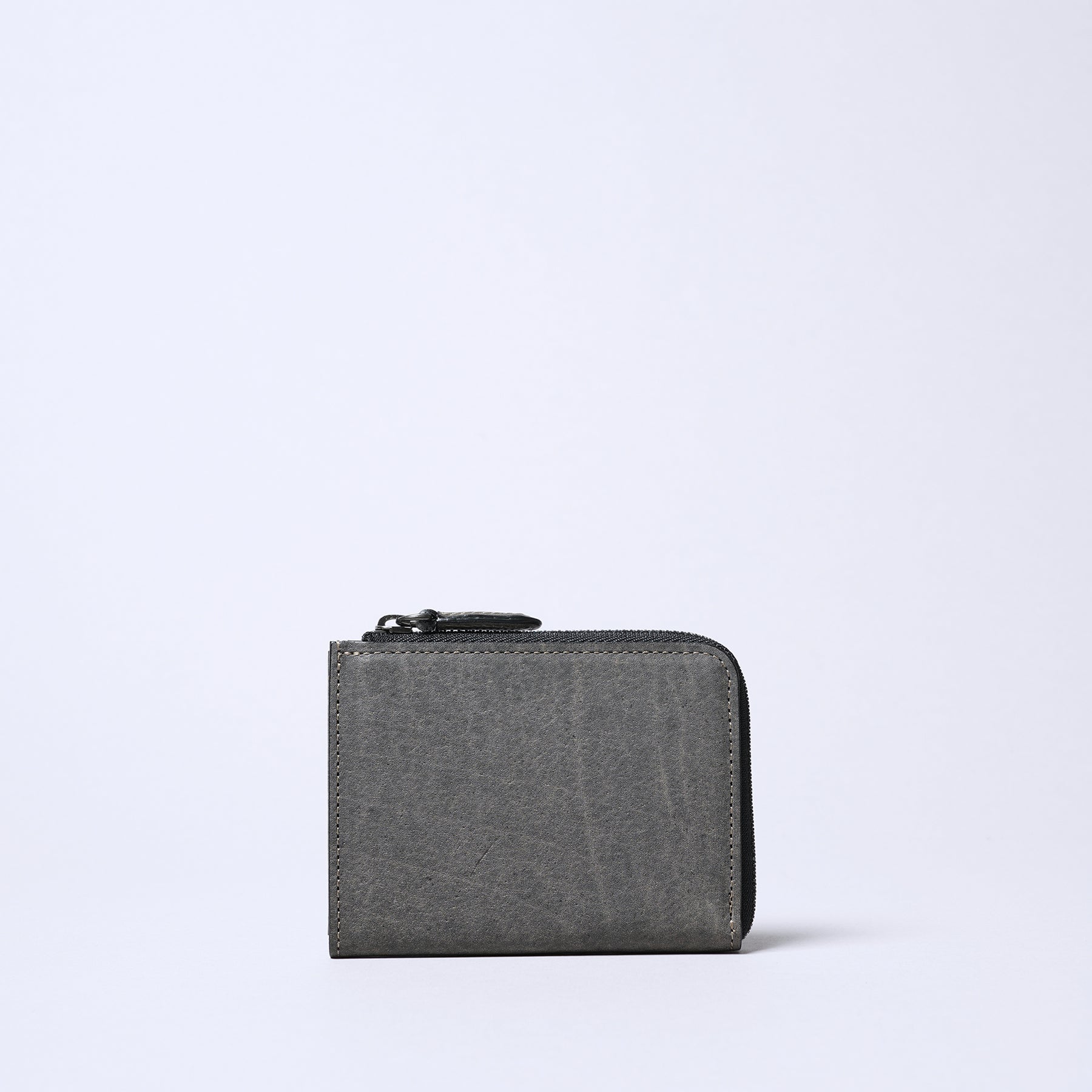 生後6ヶ月から2年程度の仔牛の革であるキップレザーを使用しています。きめ細かく、しっとりとした滑らかな肌触りが特徴で、成牛革に比べると薄手ながらも繊維が密で強度があります。使い込むほどに手に馴染み、美しいエイジング(経年変化)をお楽しみいただけます。その牛革に 日本古来の染色技法である墨染めを施しています。墨の持つ独特の深みのある黒色は、単調な黒色とは一線を画し、奥ゆかしい表情を生み出します。手作業による染色のため、一つひとつ異なる色合いや濃淡が現れ、唯一無二の個性となります。墨の自然な風合いが、革本来の素材感を引き立てます。 片側に大きく開くL字ファスナーを採用することで、紙幣の出し入れがスムーズに行えます。薄型でありながら、使いやすさを考慮した設計です。紙幣を折らずに収納できる札入れに特化したシンプルな構造です。カードポケットを必要最低限に絞ることで、よりスマートな印象に仕上がっています。無駄を省いたシンプルなデザインにより、薄型で軽量なため、ジャケットやパンツのポケットに入れてもかさばりません。