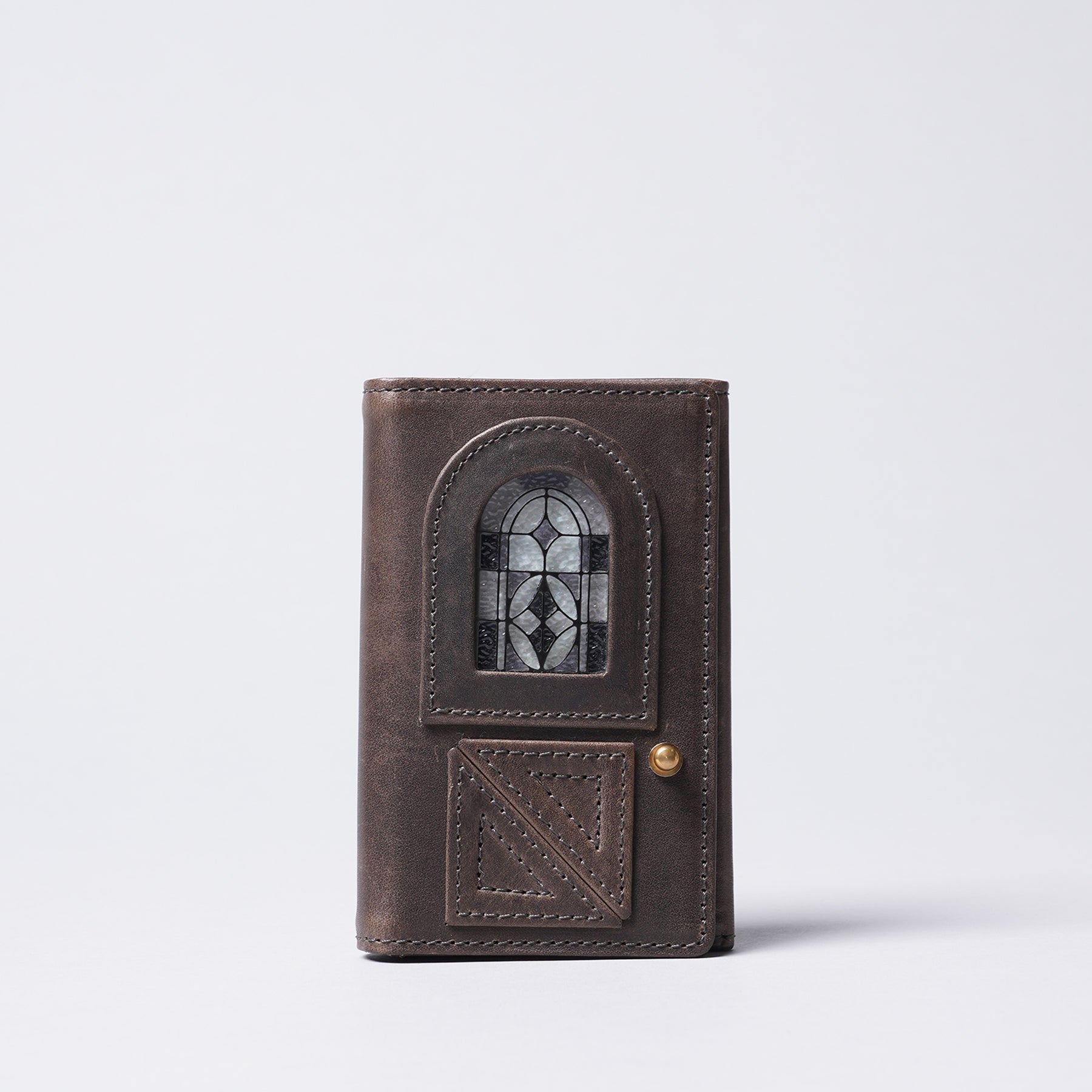 ヴィンテージのステンドグラスに近い色彩を表現したガラス部分と、マットな質感のモストロレザーとの絶妙なバランス。