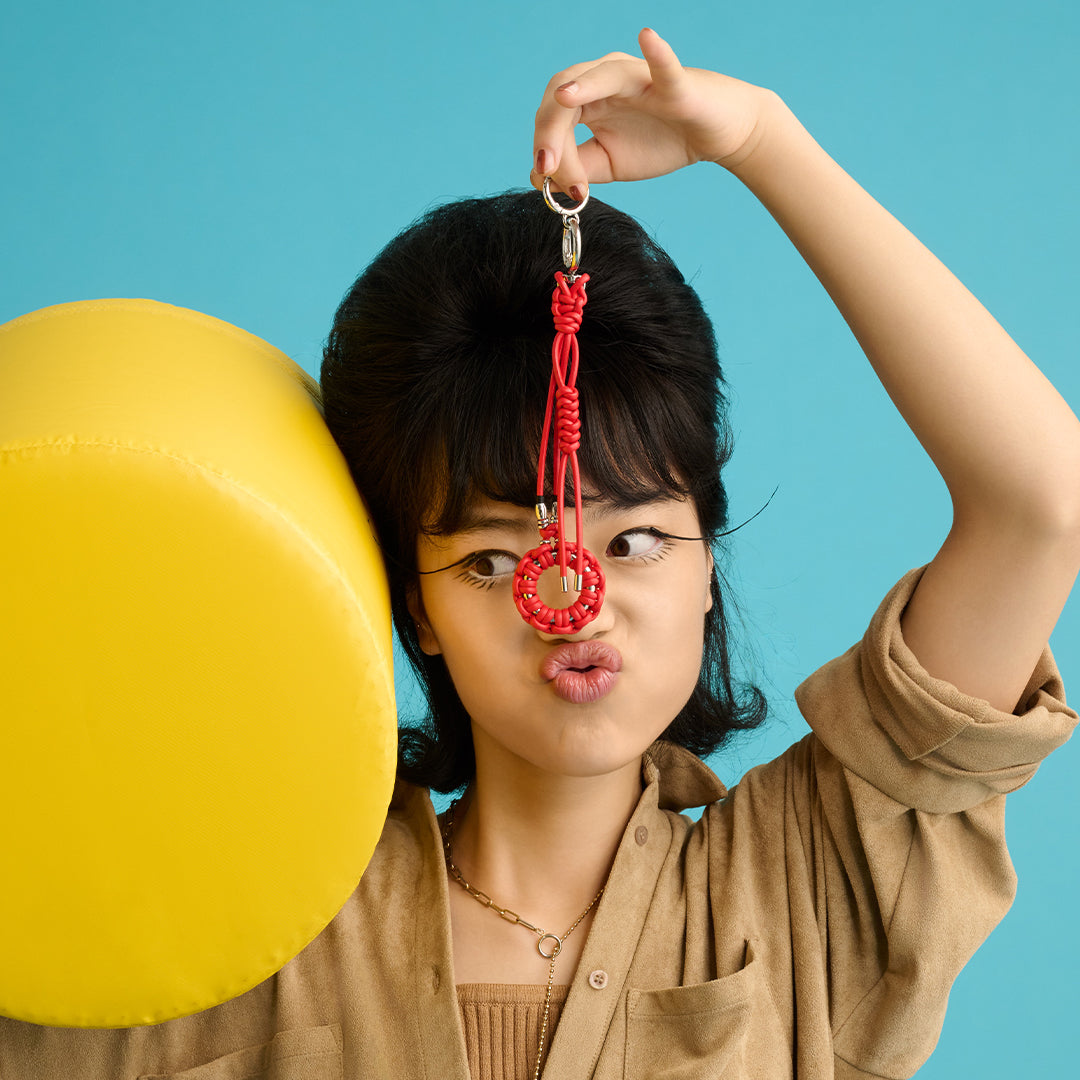 <センティ フラター ザ センシーズ>レザーブレードサークルキーストラップ/レッド