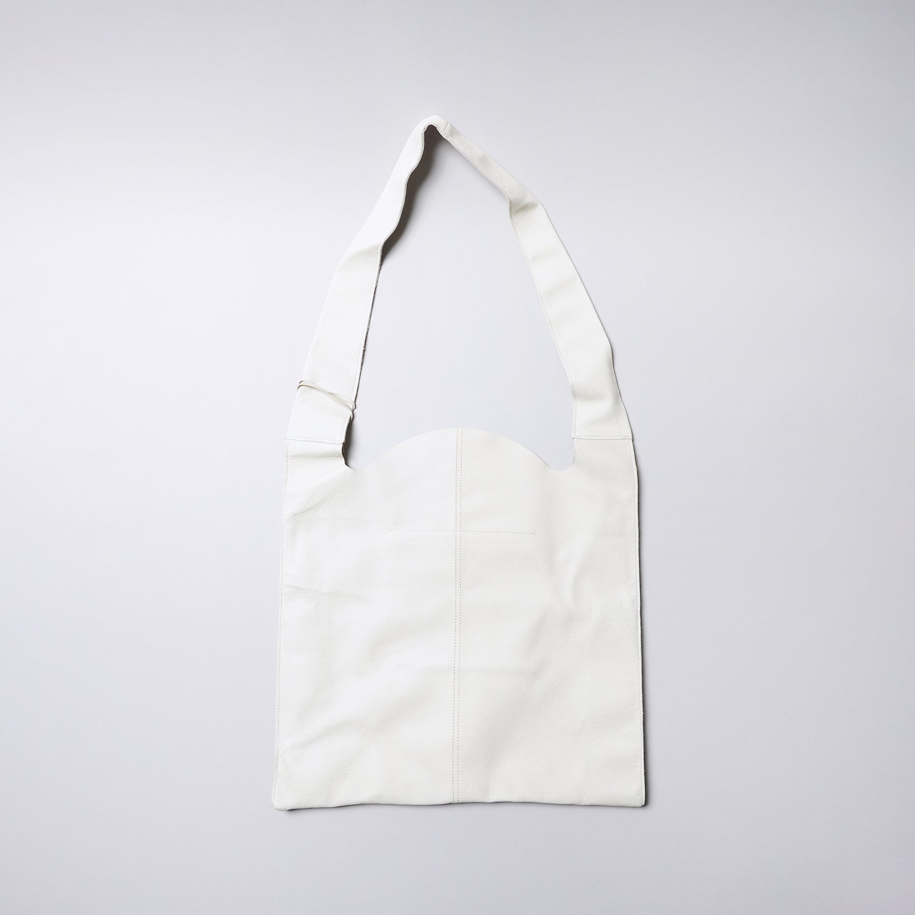 暮らしに馴染み深いプロダクトであるレジ袋をモチーフに、ワンショルダータイプにデザインされた「レジブクロ ショルダーL」。ストラップとボディが一体型の構造なので、掛けて持ったときに開口部が自然と閉じ、背面で持っても安心。開口部は丸みを帯びており、つまんで開きやすいのが特徴です。ひとまわり小さい「レジブクロ ショルダー」に比べて開口部も広いため、掛けたままスムーズに中身を出し入れできます。