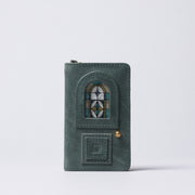 ヴィンテージのステンドグラスに近い色彩を表現したガラス部分と、マットな質感のモストロレザーとの絶妙なバランス。