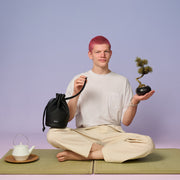 和を感じる巾着デザインが厚みと光沢のあるエンボスレザーと非常に相性良く仕上がっています。革にコシがあるので、空の状態でも独立し形をしっかり保ちます。小ぶりに見えますが、500mlペットボトルが丁度収まるサイズで、タウン向けミニバッグとしてはこれ一つで十分な収納力を持っています。巾着風ではなく、口元の革紐が二本交差タイプの王道仕様です。日本古来のバッグである巾着に着目し現代風のバッグにアレンジしました。男女兼用で性別問わずお使い頂けます。