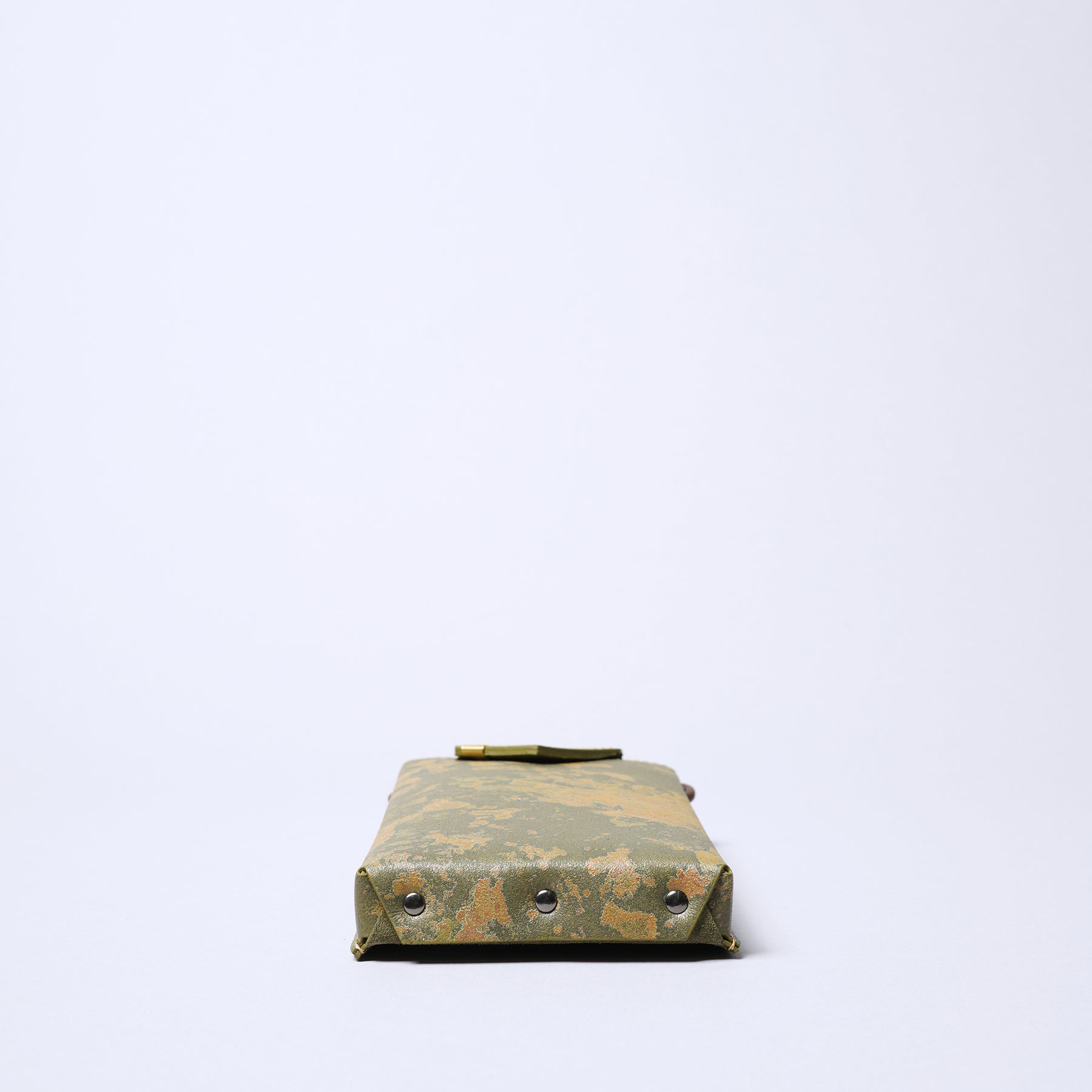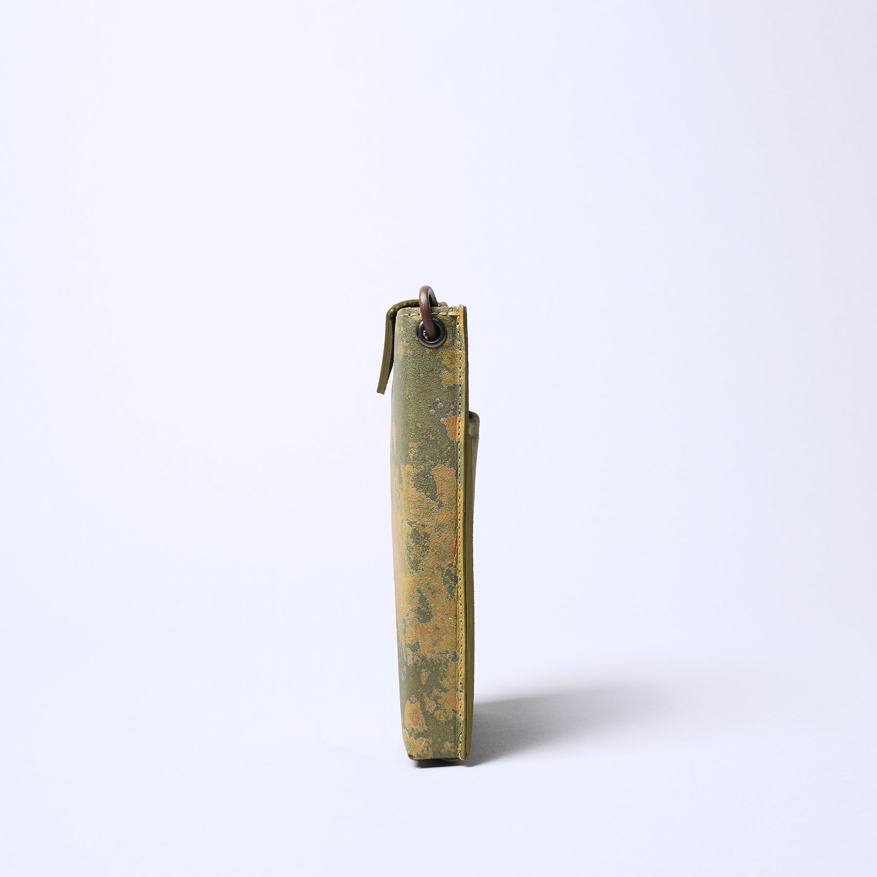 🇯🇵這款7.5英吋薄型皮革手機收納套是採用黃銅鏽加工處理之皮革製成。此種材質乃由皮革職人依據積累經驗及其藝術感將一片片皮革噴塗黃銅或紅銅,使之產生鏽化效果,進而精心製作成具有工藝品等級的皮革。