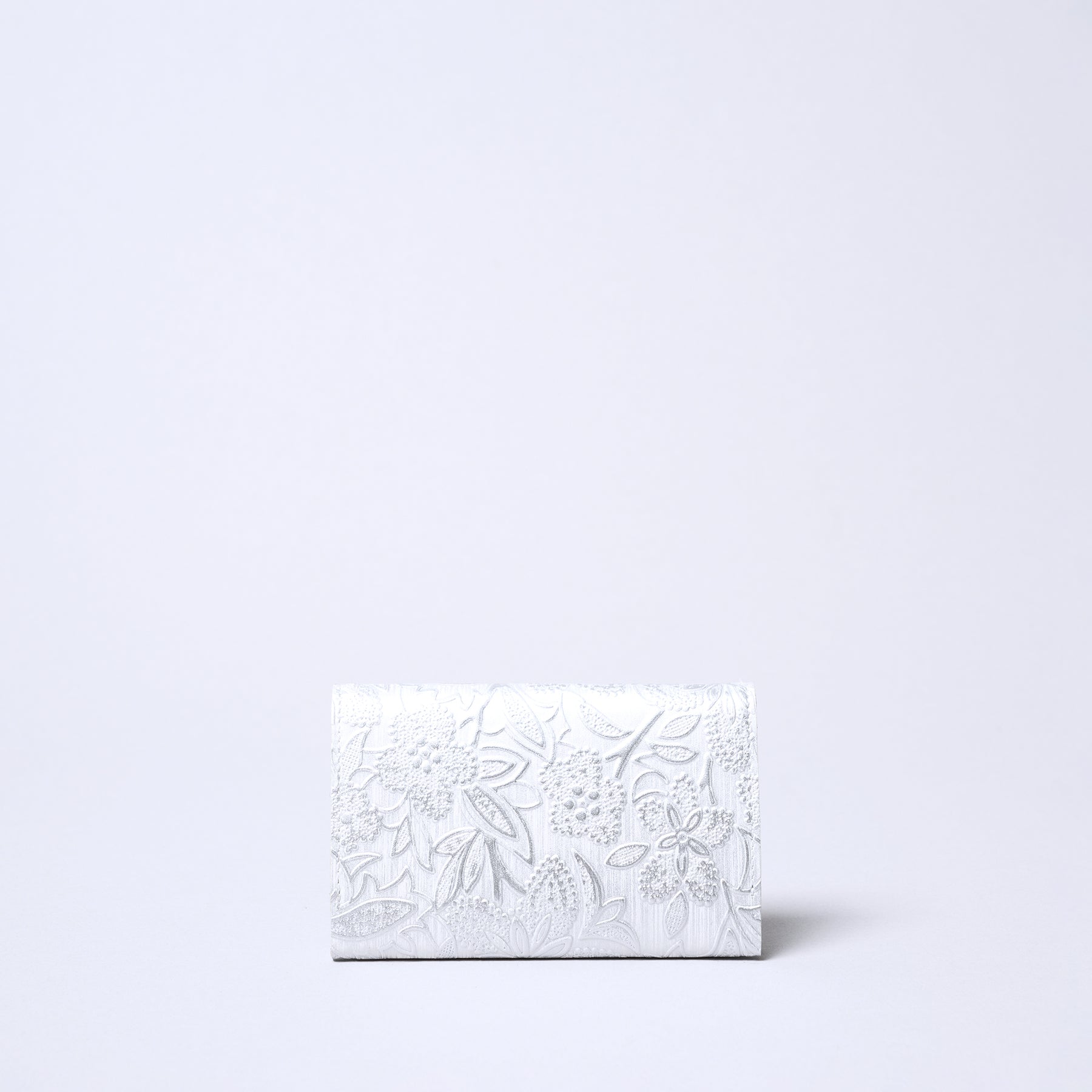 這款名片夾採用以細緻珍珠光澤加工的義大利製壓花皮革製作而成,散發出女性柔美華麗的氛圍。由日本職人精心製作,內部為雙隔層結構。